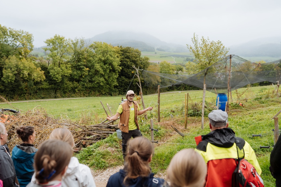 Der Klimawandel bringt neue Herausforderungen – auch für die Landschaft im Jurapark Aargau, zum Beispiel durch stärkere Regenfälle und längere Trockenperioden. Hazelburger ist Teil des Reallabors Jurapark Aargau, das einen Beitrag für widerstandfähige Höfe leisten möchte. Hazelburger hat auf dem Altenberg in Wölflinswil eine sogenannte Keyline umgesetzt, die von den Forschungsinstituten ETH, WSL, Eawag und Empa beforscht wird. Gräben und Dämme entlang einer Keyline sollen das Regenwasser besser verteilen und die Landschaft vor Erosion und Austrocknung schützen.